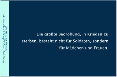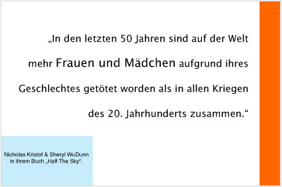 Sie finden auf dieser Seite Zitate aus dem Buch, die deutlich machen, warum es keine Mädchen- oder Frauenfrage ist, von der die beiden Journalisten erzählen. Es ist eine humanitäre Frage, die uns ALLE betrifft.